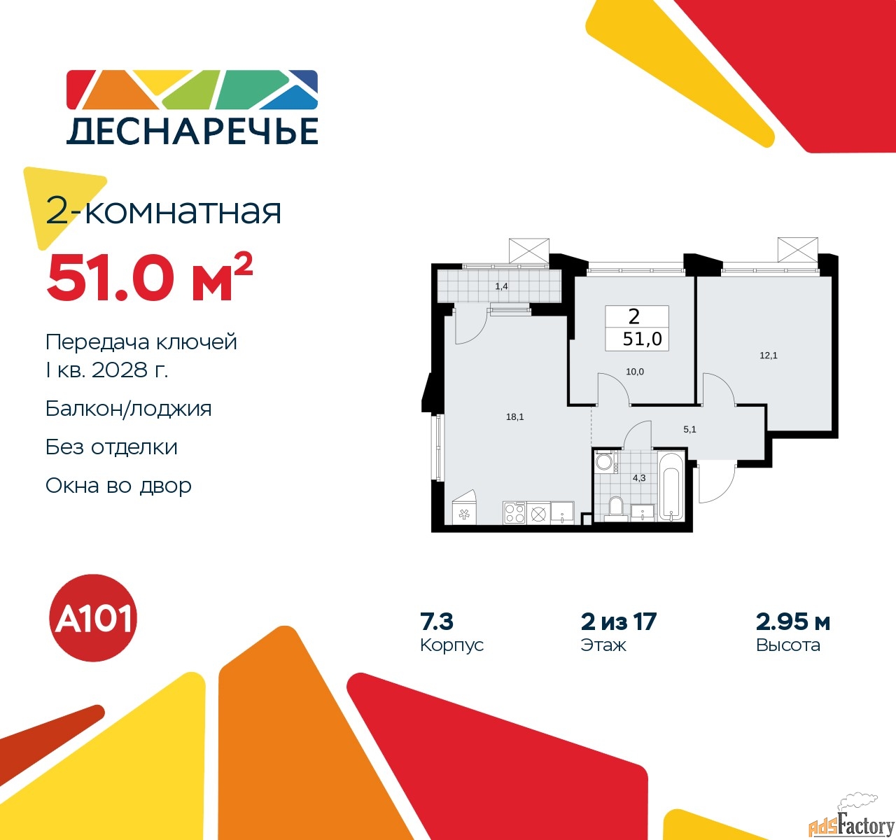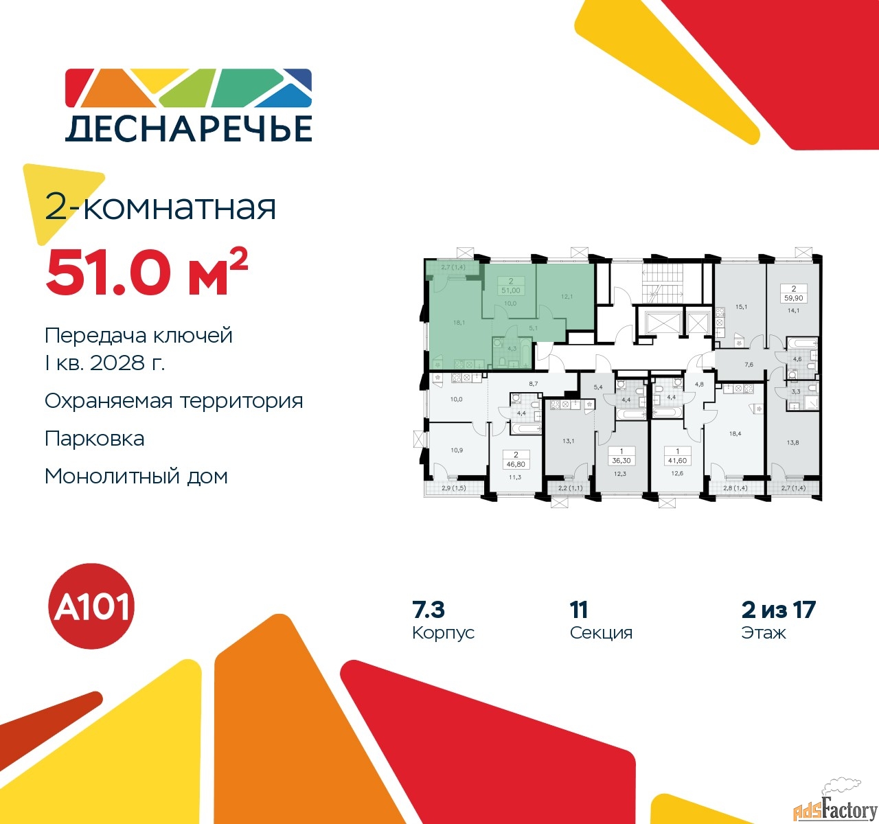 Дом монолитный, черырехподъездный, переменной этажности, от 9 до 17 этажей. Квартира находится в 1-й секции высотой 15 этажей в корпусе 7.3. На этаже 5 квартир. В подъезде 1 пассажирский и 1 грузовой лифт. Начало строительства - 2 квартал 2025 года. Окончание строительства - 1 квартал 2028 года. Оформление сделки по договору долевого участия.