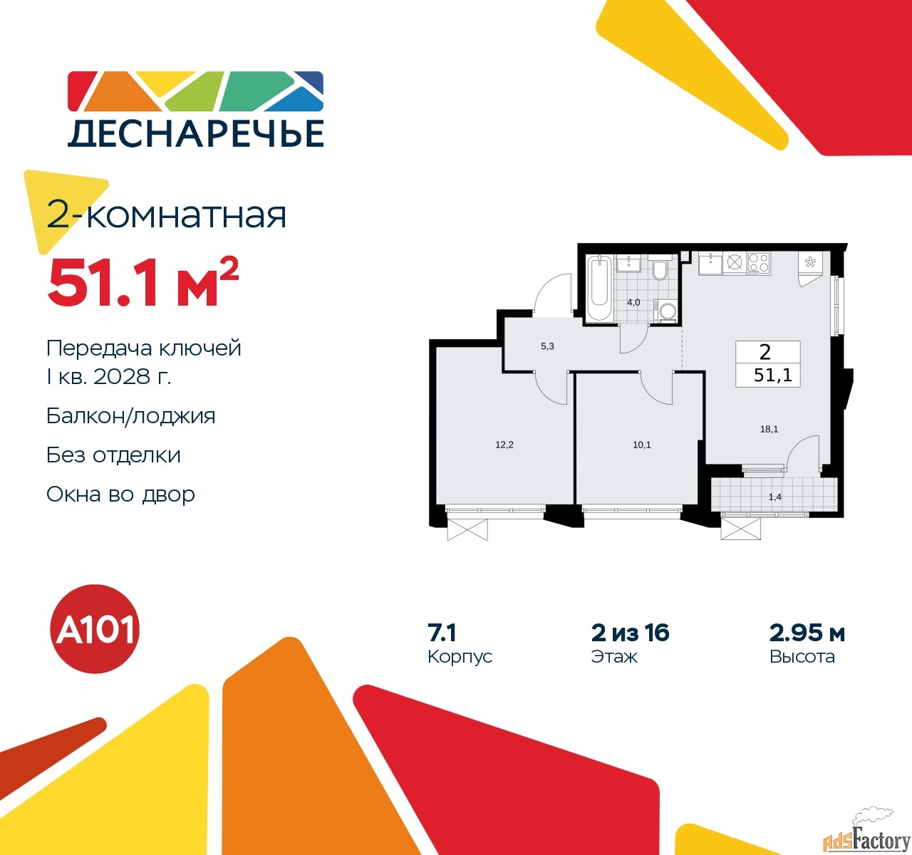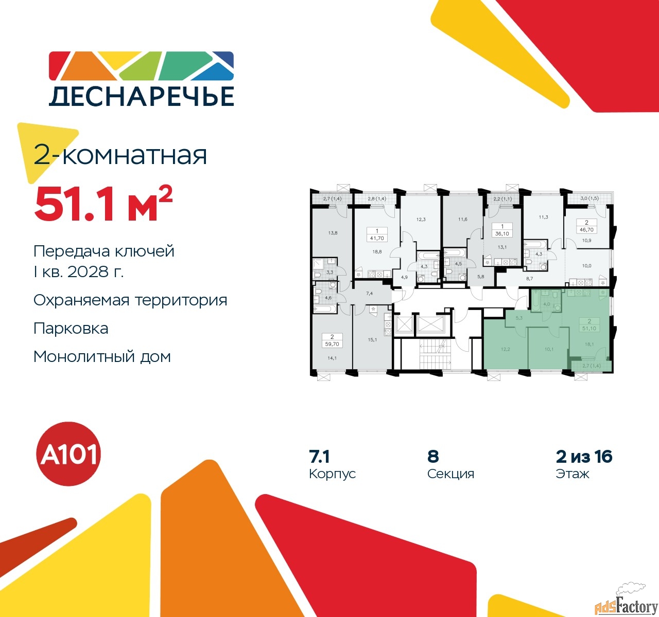 Дом монолитный, многоподъездный, переменной этажности, от 8 до 16 этажей. Квартира находится в 8-й секции высотой 11 этажей в корпусе 7.1. На этаже 5 квартир. В подъезде 1 пассажирский и 1 грузовой лифт. Начало строительства - 2 квартал 2025 года. Окончание строительства - 1 квартал 2028 года. Оформление сделки по договору долевого участия.