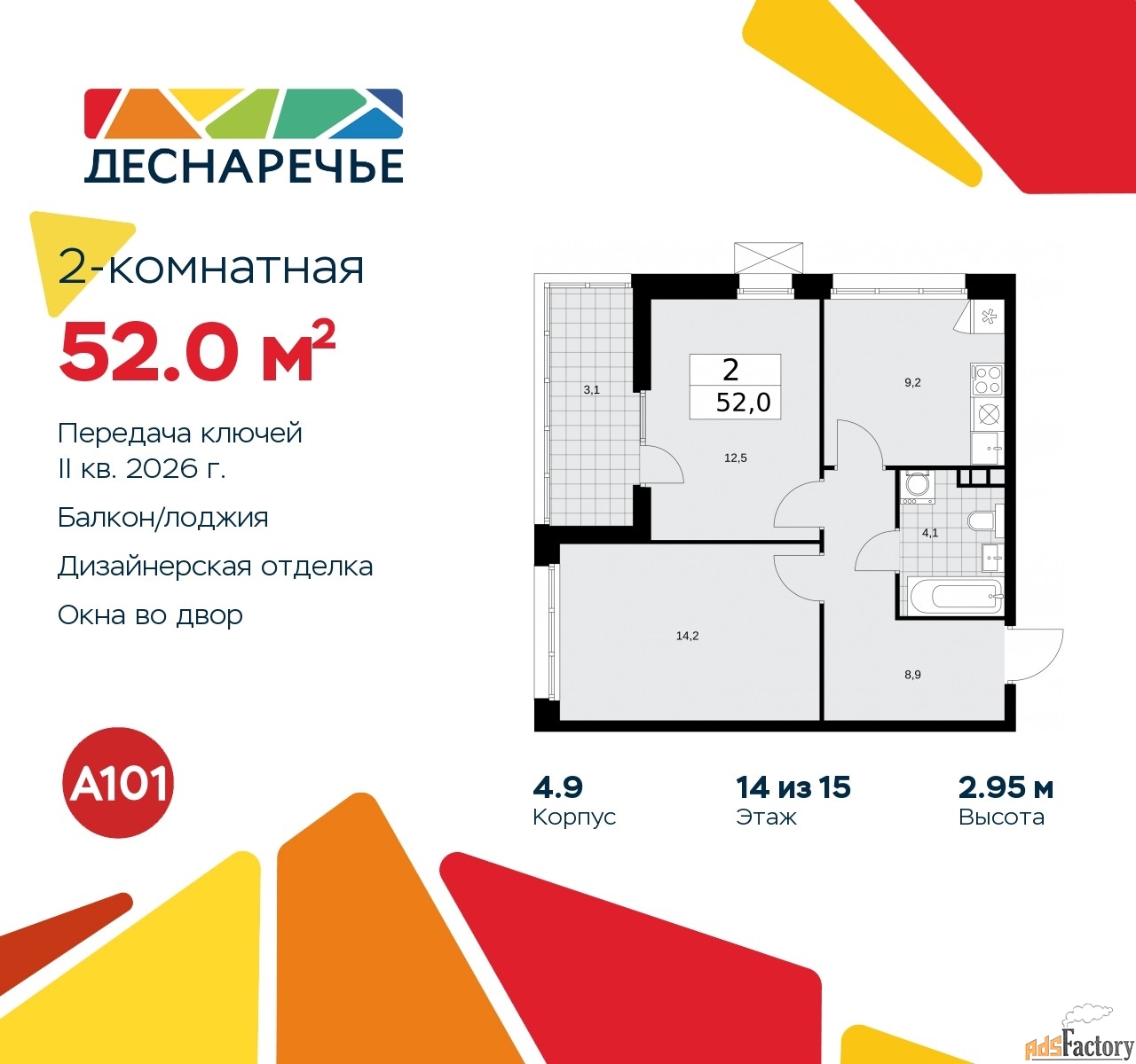 Артикул квартиры по базе застройщика 88К-4.9-2140.