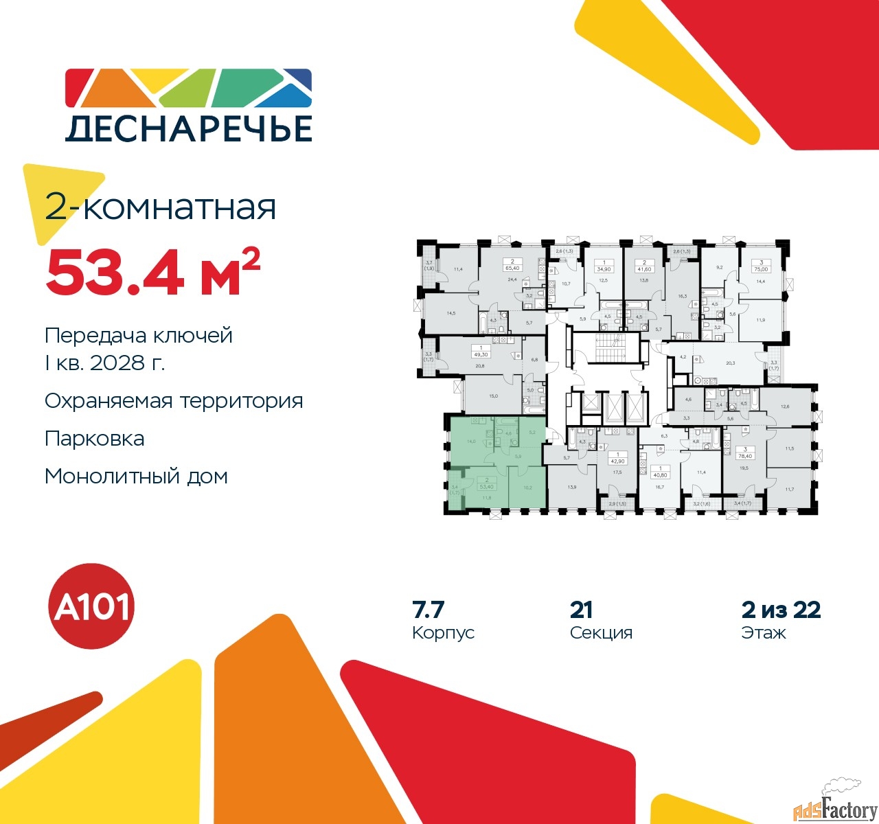 Квартира находится в корпусе 7.7. Дом монолитный, одноподъездный, высотой 22 этажа. На этаже 9 квартир. В подъезде 1 пассажирский и 2 грузовых лифта. Начало строительства - 2 квартал 2025 года. Окончание строительства - 1 квартал 2028 года. Оформление сделки по договору долевого участия.