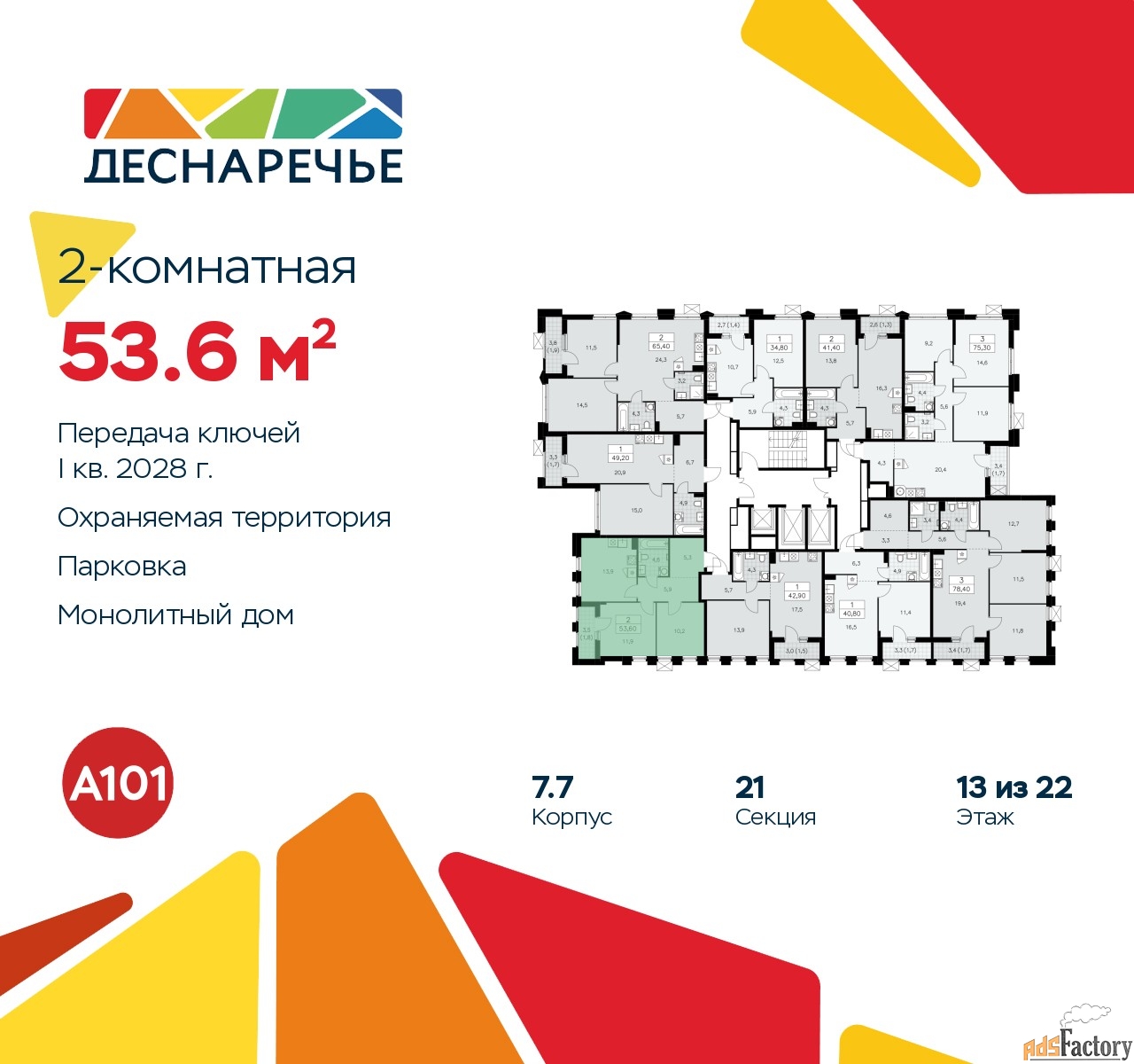 Квартира находится в корпусе 7.7. Дом монолитный, одноподъездный, высотой 22 этажа. На этаже 9 квартир. В подъезде 1 пассажирский и 2 грузовых лифта. Начало строительства - 2 квартал 2025 года. Окончание строительства - 1 квартал 2028 года. Оформление сделки по договору долевого участия.
