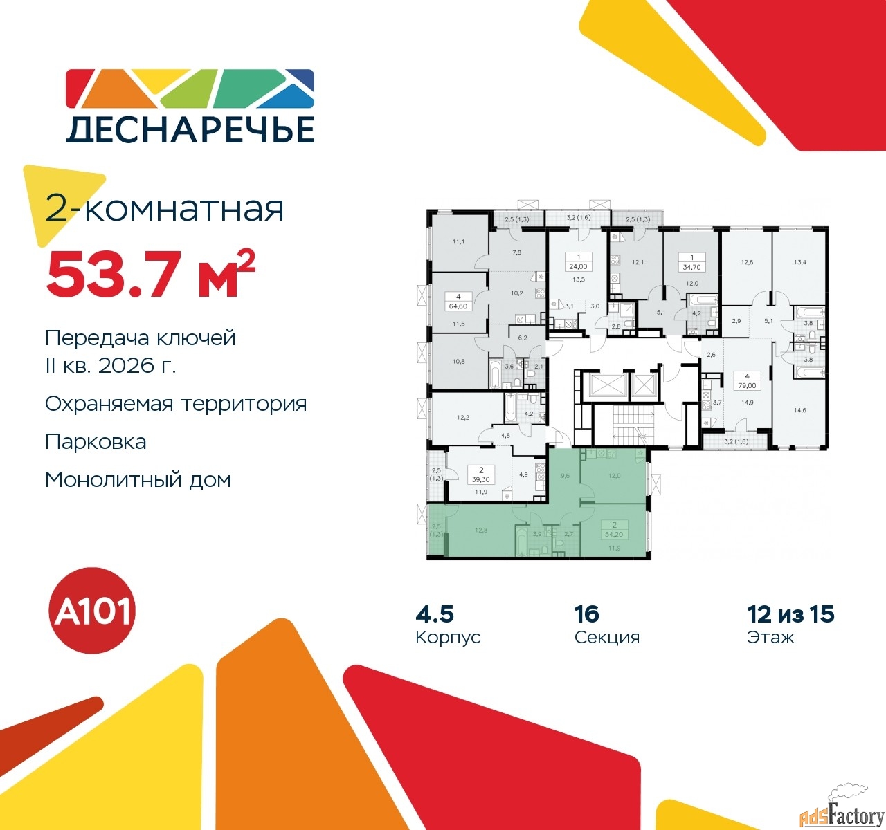 Общая площадь (кв.м) | 53.7 |