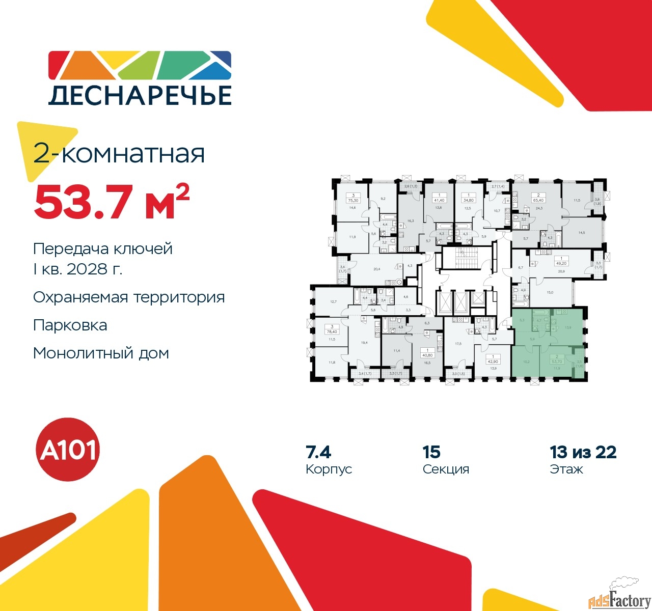 Общая площадь (кв.м) | 53.7 |