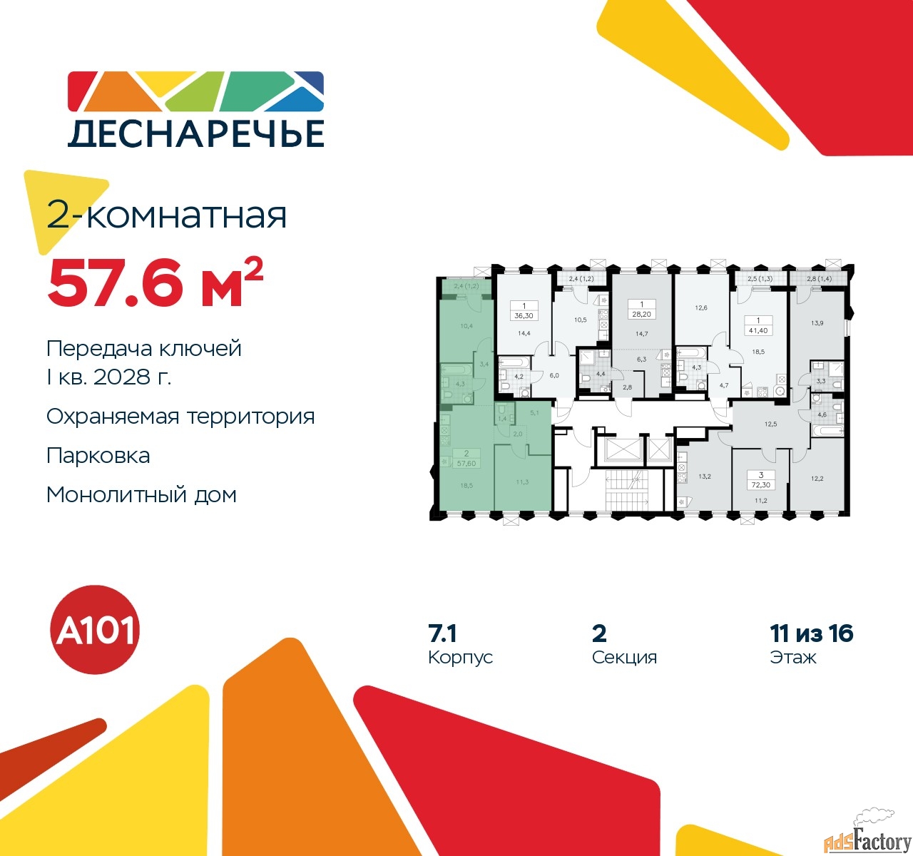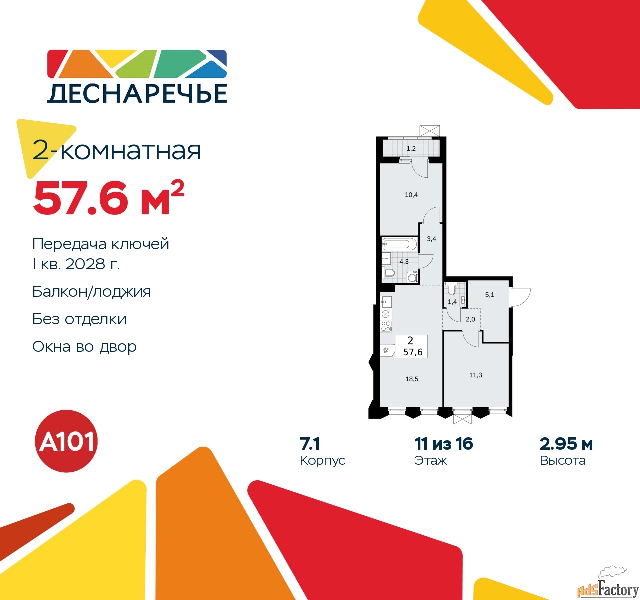 | Общая площадь (кв.м) | 57.6 |