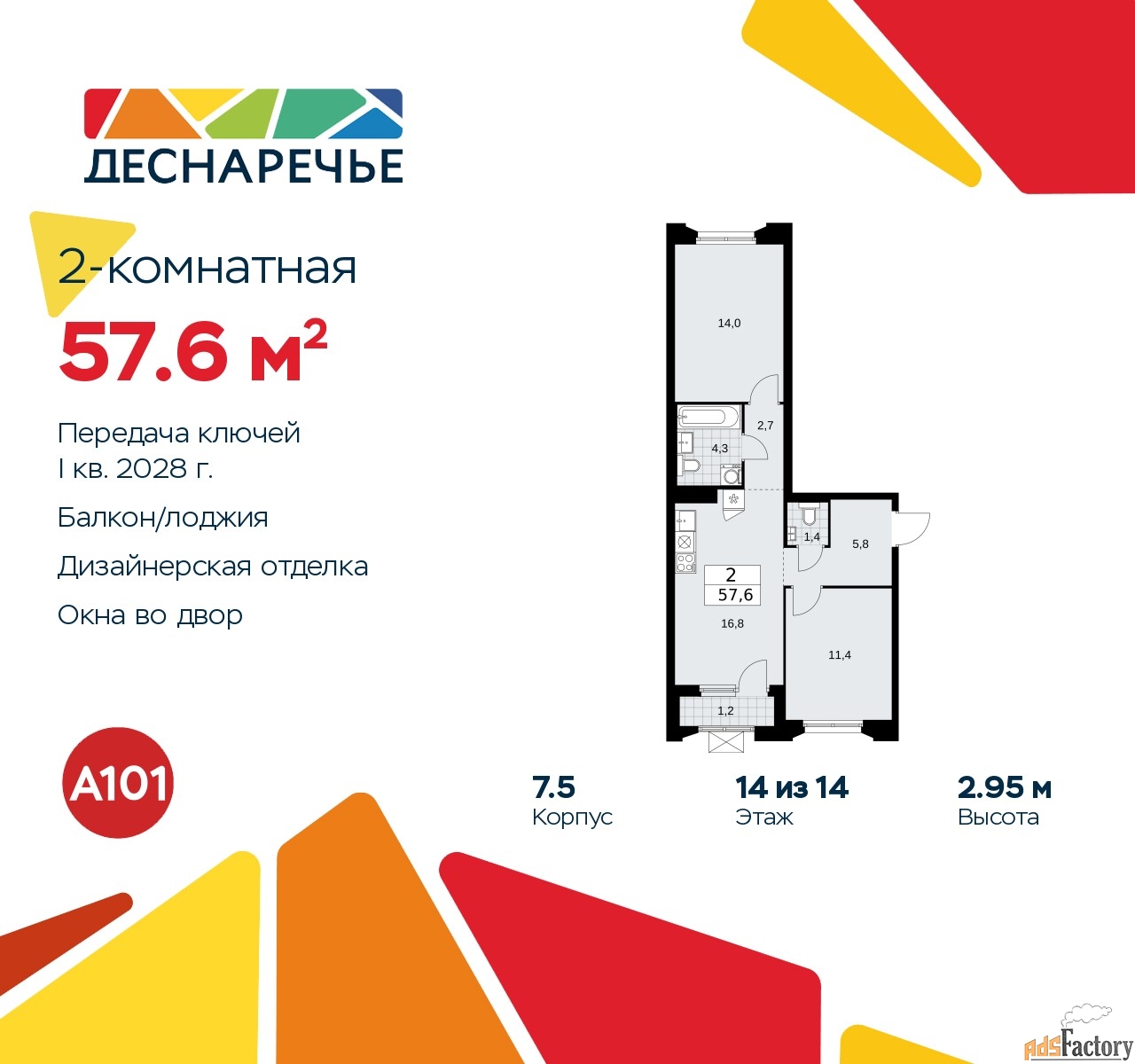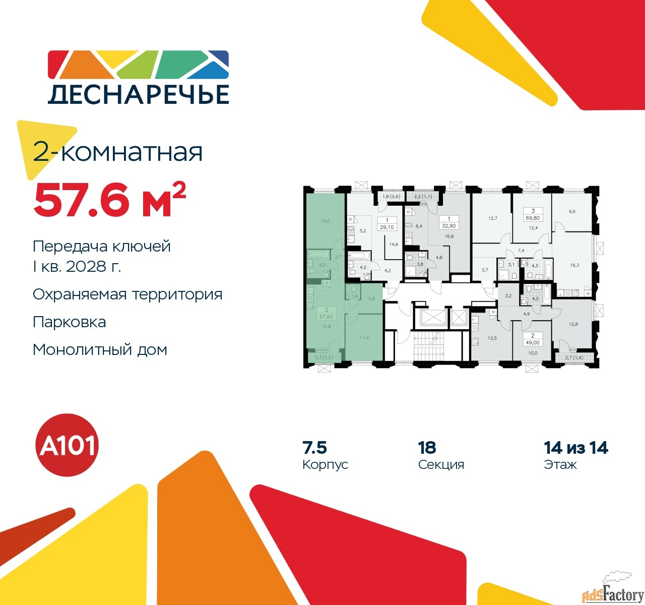 Дом монолитный, трехподъездный, переменной этажности, от 11 до 17 этажей. Квартира находится в 3-й секции высотой 14 этажей в корпусе 7.5. На этаже 5 квартир. В подъезде 1 пассажирский и 1 грузовой лифт. Начало строительства - 2 квартал 2025 года. Окончание строительства - 1 квартал 2028 года. Оформление сделки по договору долевого участия.