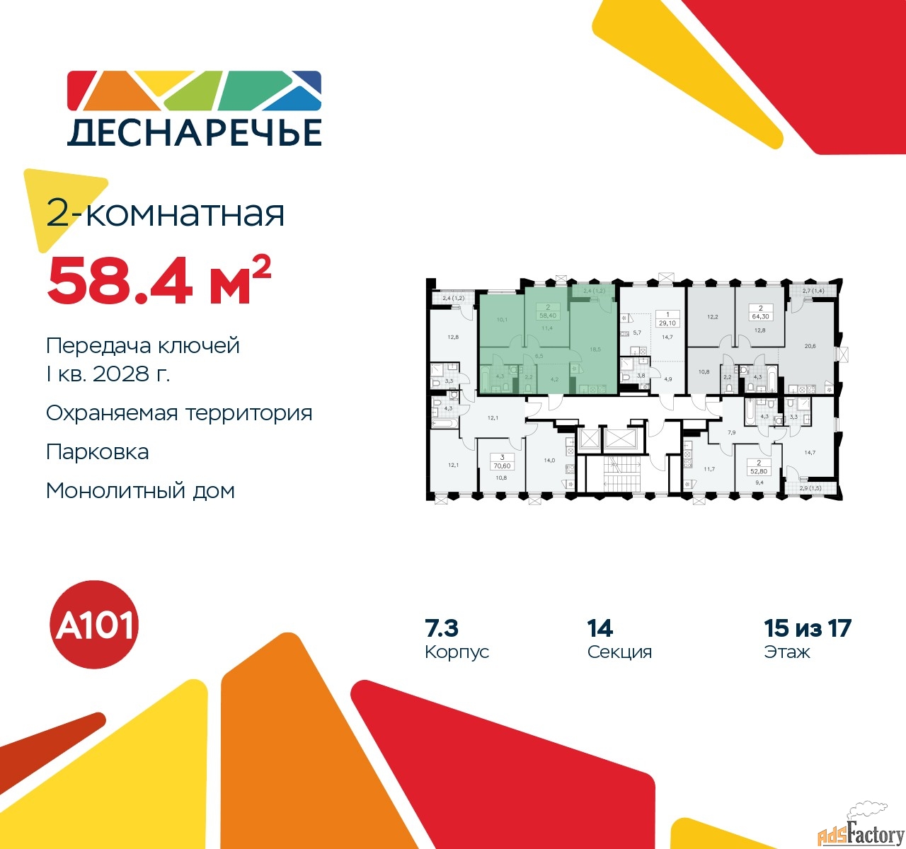 Дом монолитный, черырехподъездный, переменной этажности, от 9 до 17 этажей. Квартира находится в 4-й секции высотой 16 этажей в корпусе 7.3. На этаже 5 квартир. В подъезде 1 пассажирский и 1 грузовой лифт. Начало строительства - 2 квартал 2025 года. Окончание строительства - 1 квартал 2028 года. Оформление сделки по договору долевого участия.