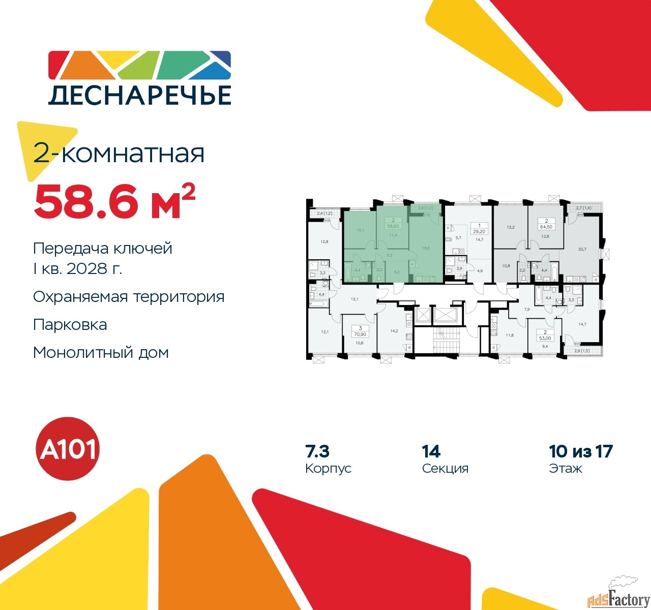 Дом монолитный, черырехподъездный, переменной этажности, от 9 до 17 этажей. Квартира находится в 4-й секции высотой 16 этажей в корпусе 7.3. На этаже 5 квартир. В подъезде 1 пассажирский и 1 грузовой лифт. Начало строительства - 2 квартал 2025 года. Окончание строительства - 1 квартал 2028 года. Оформление сделки по договору долевого участия.