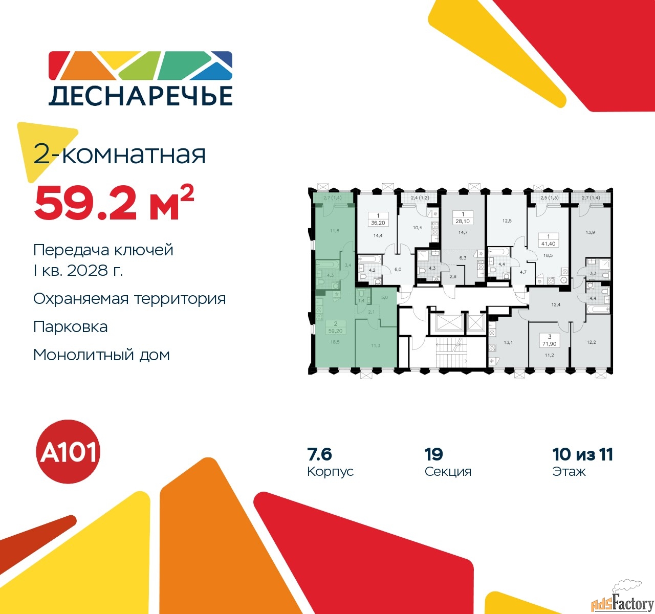 Дом монолитный, двухподъездный, высотой 11 этажей. Квартира находится в 1-й секции в корпусе 7.6. На этаже 5 квартир. В подъезде 1 пассажирский и 1 грузовой лифт. Начало строительства - 2 квартал 2025 года. Окончание строительства - 1 квартал 2028 года. Оформление сделки по договору долевого участия.