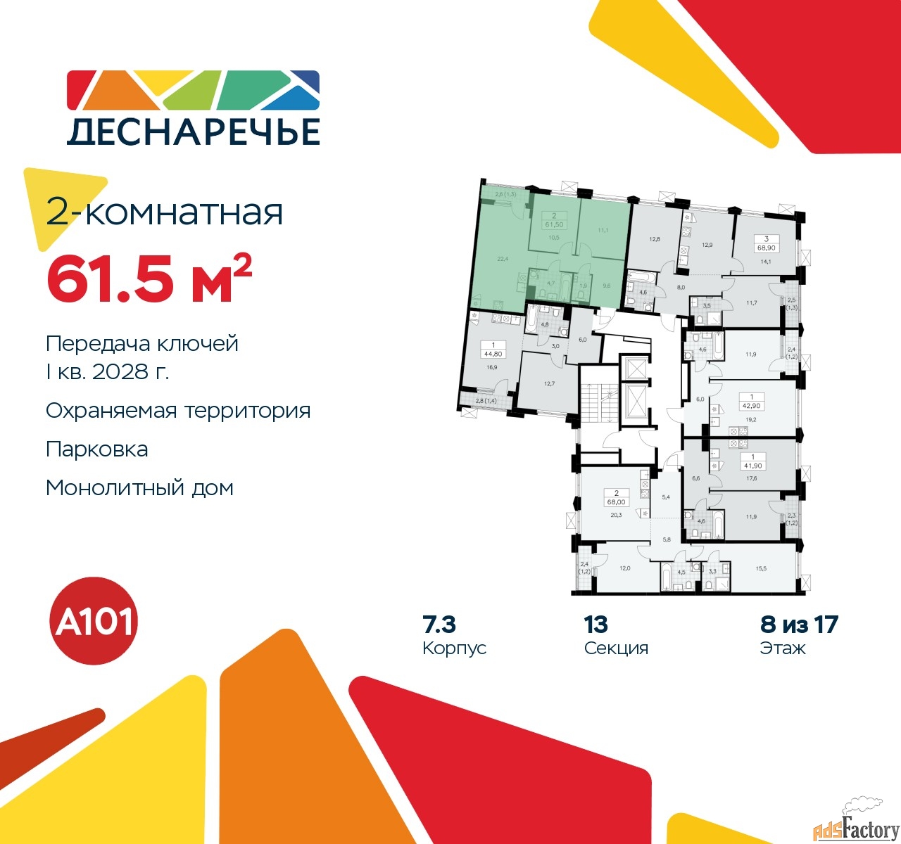 Общая площадь (кв.м) | 61.5 |