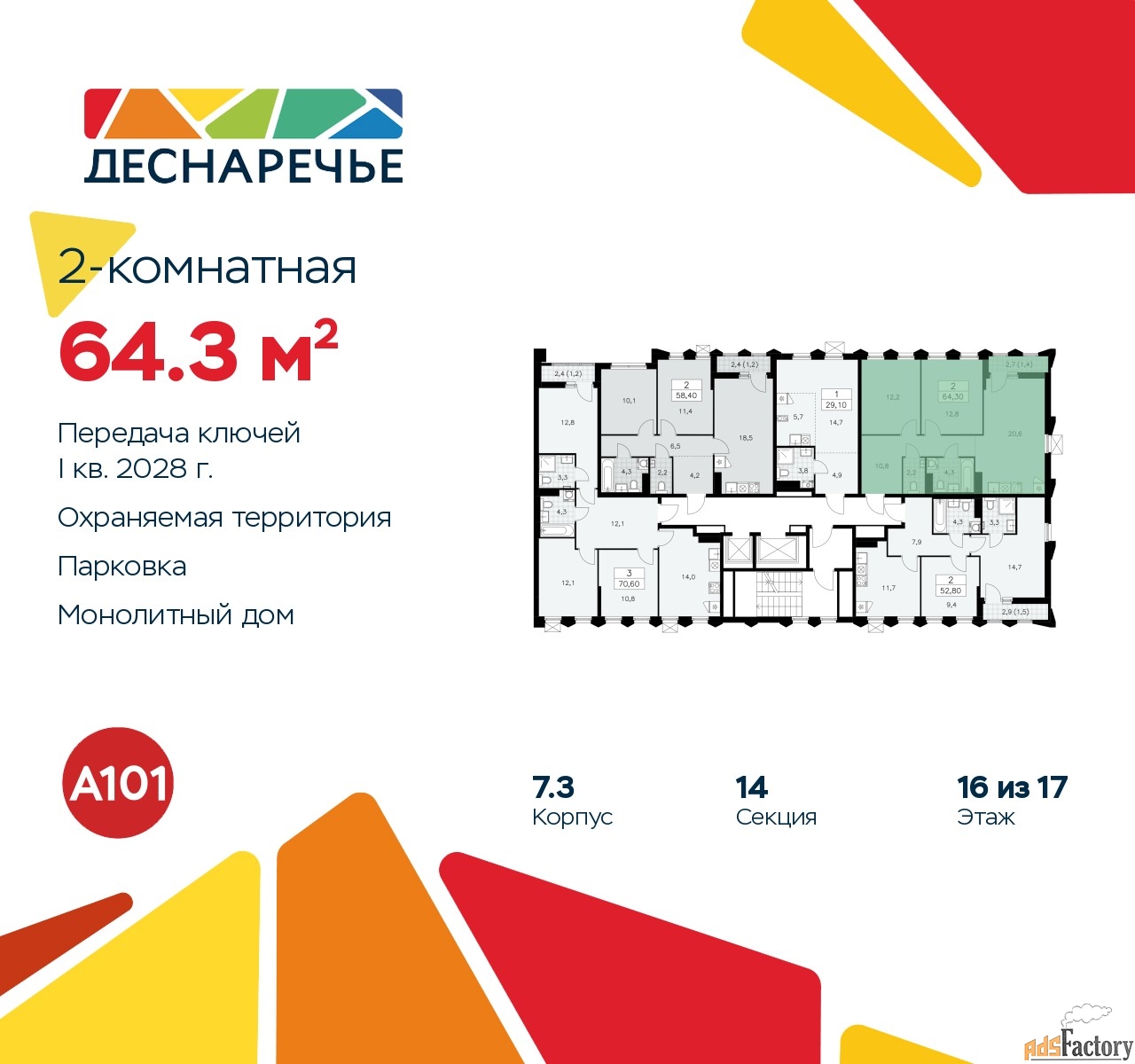 | Общая площадь (кв.м) | 64.3 |