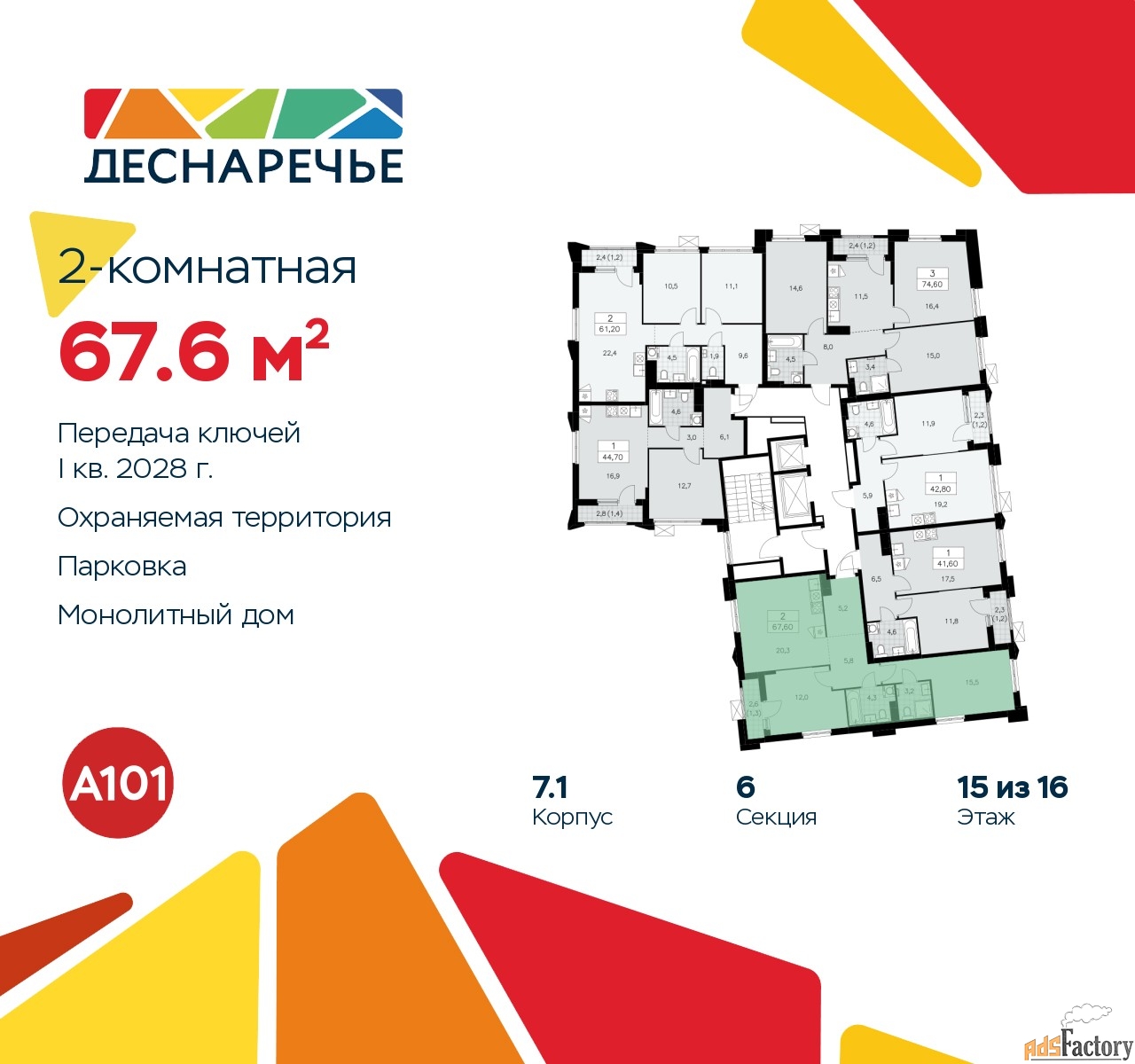 Дом монолитный, многоподъездный, переменной этажности, от 8 до 16 этажей. Квартира находится в 6-й секции высотой 16 этажей в корпусе 7.1. На этаже 6 квартир. В подъезде 1 пассажирский и 1 грузовой лифт. Начало строительства - 2 квартал 2025 года. Окончание строительства - 1 квартал 2028 года. Оформление сделки по договору долевого участия.