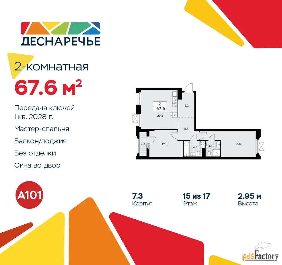 Дом монолитный, черырехподъездный, переменной этажности, от 9 до 17 этажей. Квартира находится в 3-й секции высотой 17 этажей в корпусе 7.3. На этаже 5 квартир. В подъезде 1 пассажирский и 1 грузовой лифт. Начало строительства - 2 квартал 2025 года. Окончание строительства - 1 квартал 2028 года. Оформление сделки по договору долевого участия.