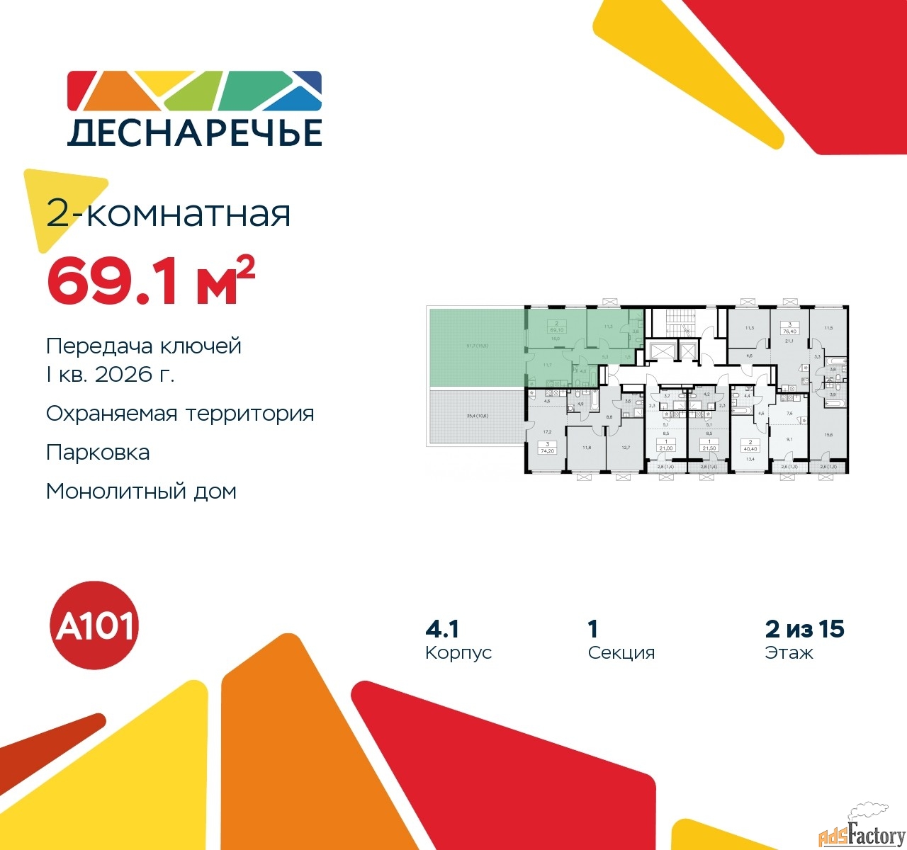 | Общая площадь (кв.м) | 69.1 |