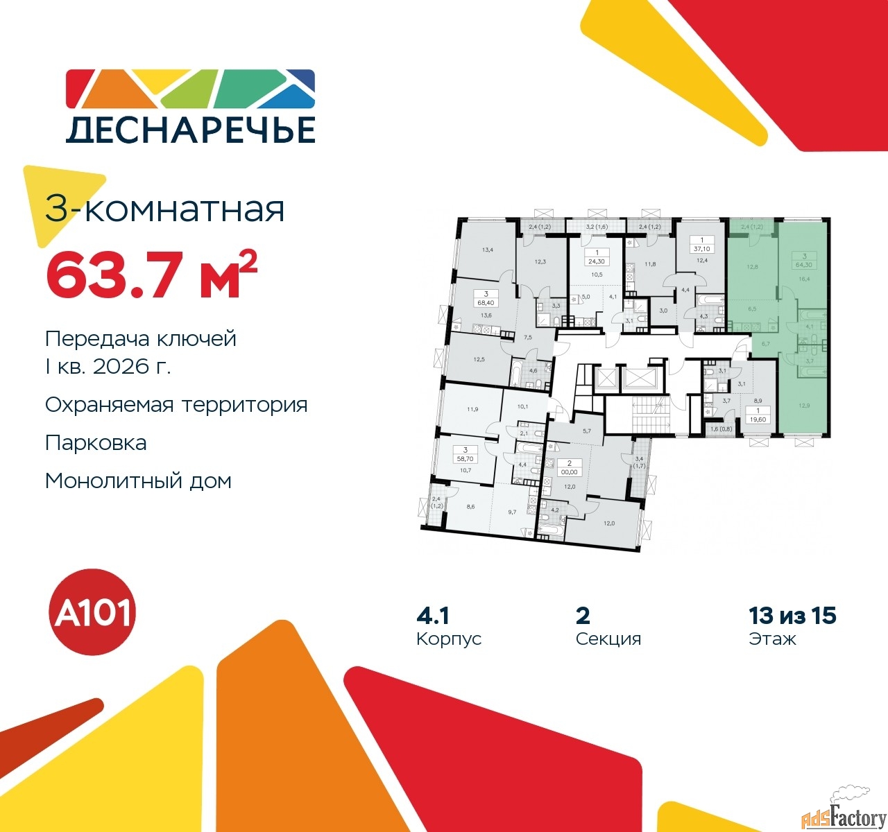| Общая площадь (кв.м) | 63.7 |