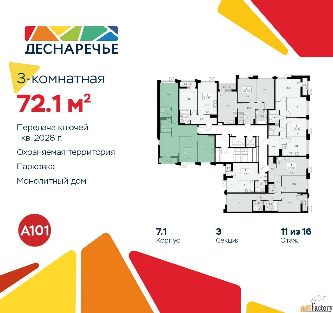 | Общая площадь (кв.м) | 72.1 |