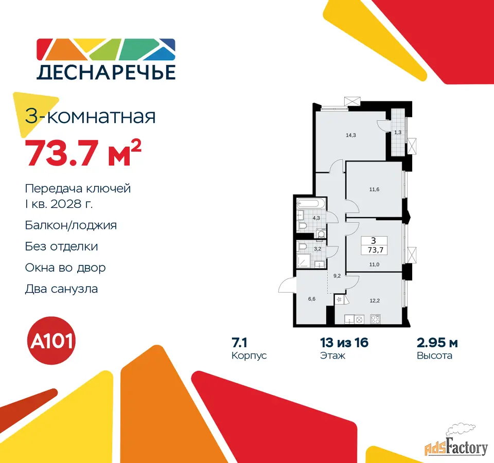 | Общая площадь (кв.м) | 73.7 |