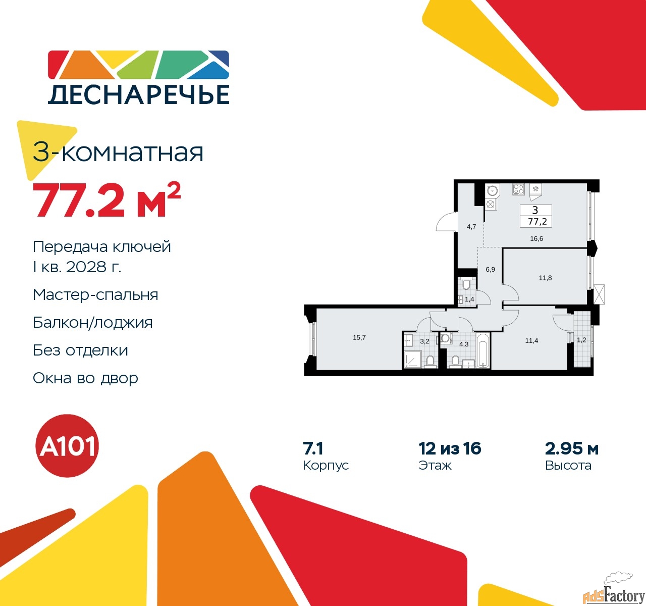| Общая площадь (кв.м) | 77.2 |