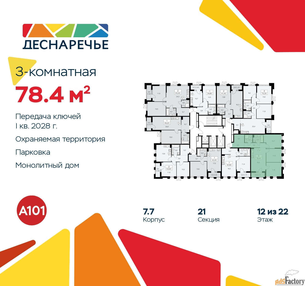 Квартира находится в корпусе 7.7. Дом монолитный, одноподъездный, высотой 22 этажа. На этаже 9 квартир. В подъезде 1 пассажирский и 2 грузовых лифта. Начало строительства - 2 квартал 2025 года. Окончание строительства - 1 квартал 2028 года. Оформление сделки по договору долевого участия.