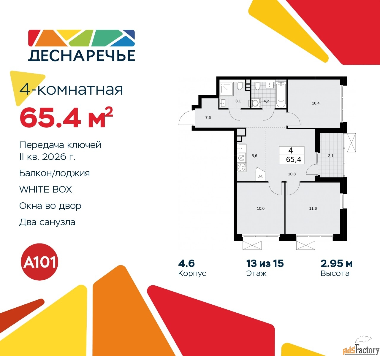 Квартира находится в корпусе 4.6. Дом монолитный, одноподъездный, высотой 15 этажей. На этаже 10 квартир. В подъезде 1 пассажирский и 1 грузовой лифт. Начало строительства - 3 квартал 2023 года. Окончание строительства - 2 квартал 2026 года. Оформление сделки по договору долевого участия.