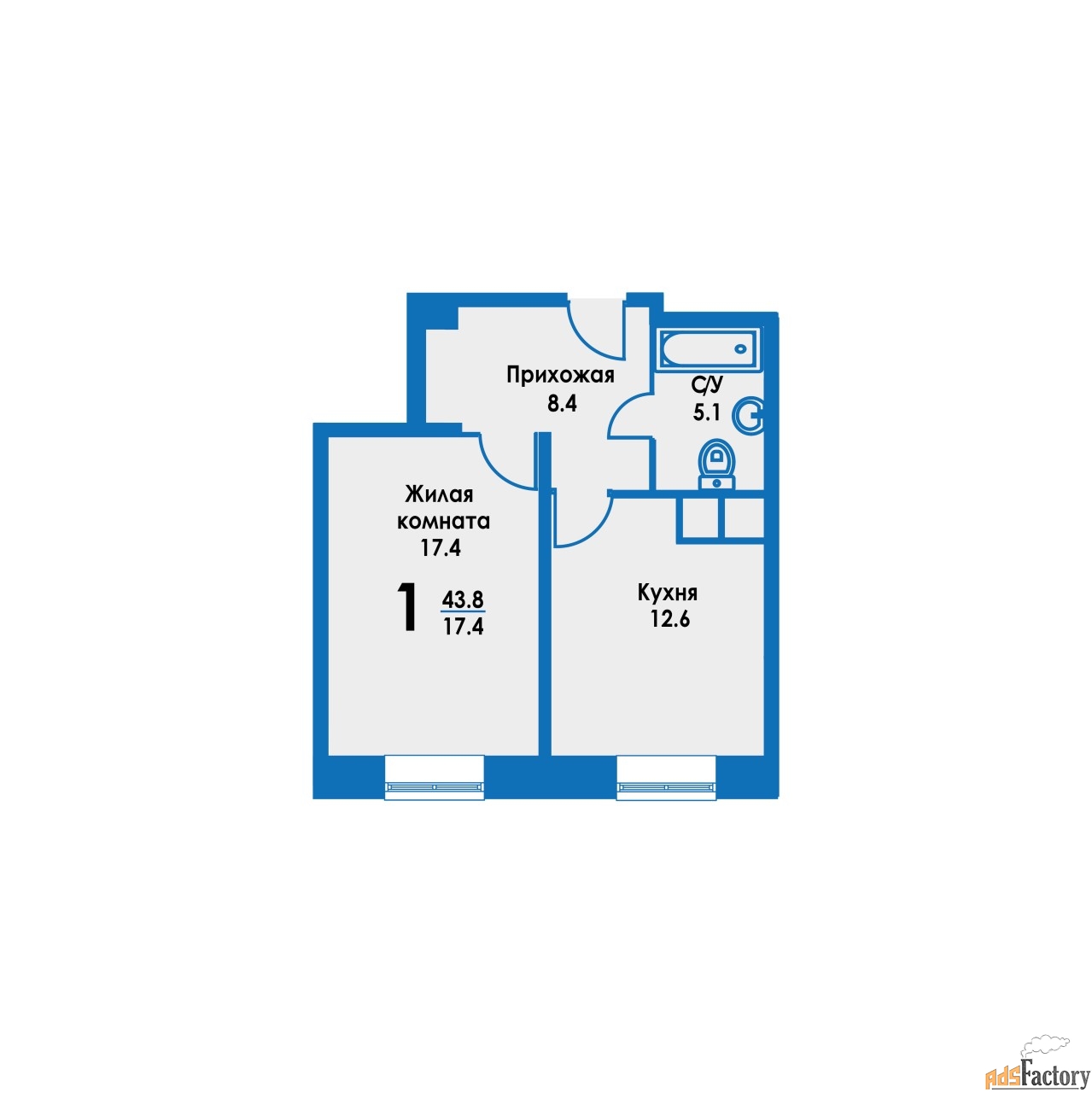 Общая площадь (кв.м) | 43.8 |