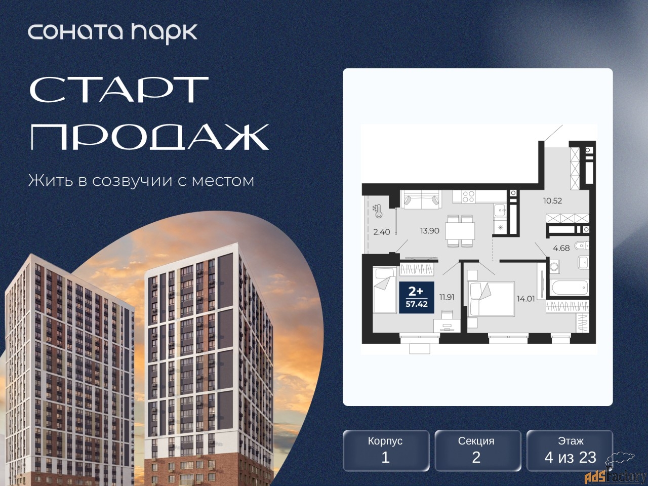 | Этажность здания | 23 |
