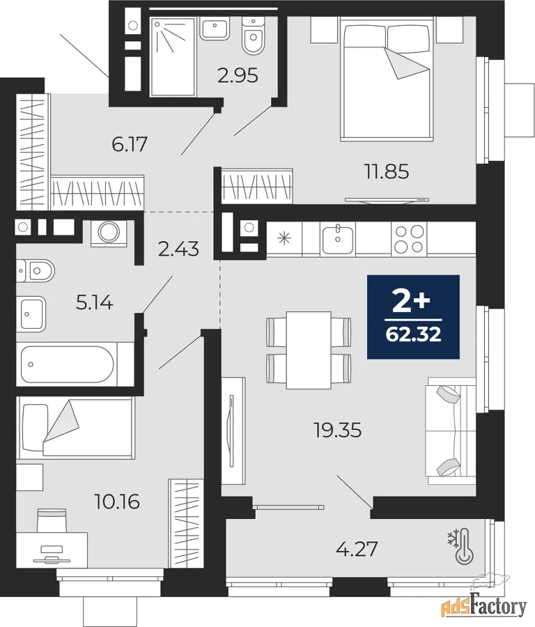 | Общая площадь (кв.м) | 60.19 |