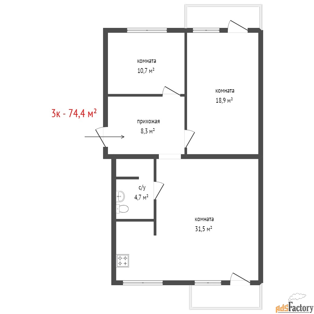 | Общая площадь (кв.м) | 74,5 |