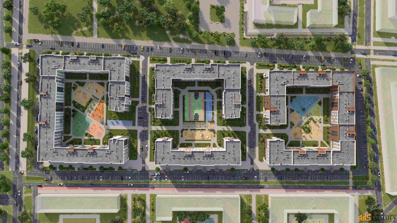 Парковка автомобилей - наземная. Инфраструктура: спортивные площадки, места для отдыха, супермаркет, коммерческие объекты.