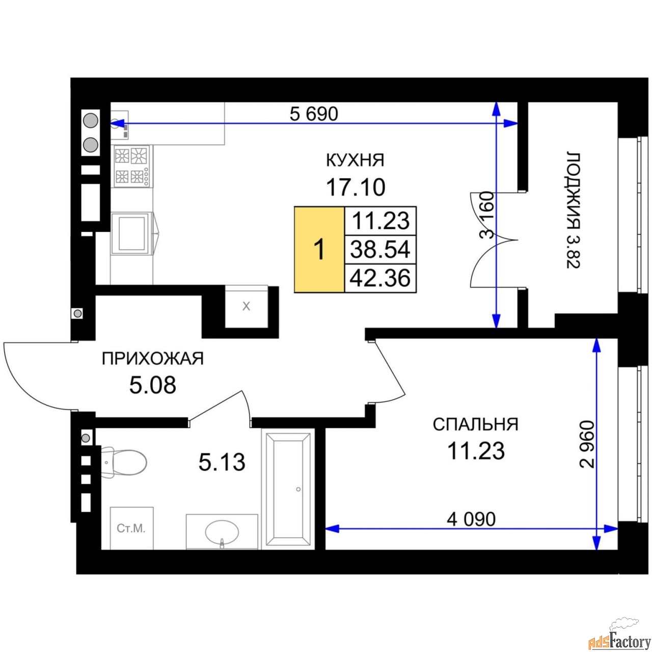 | Площадь кухни (кв.м) | 17.1 |