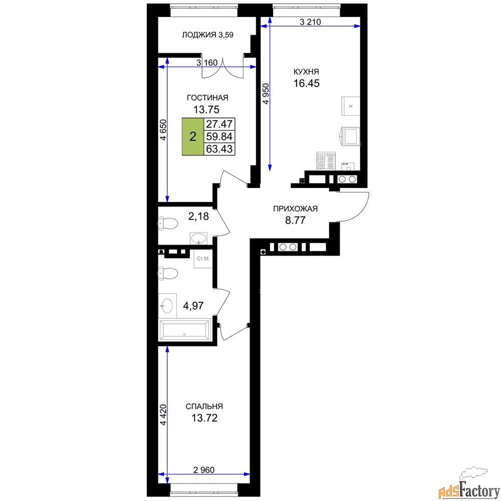 Общая площадь (кв.м) | 63.43 |