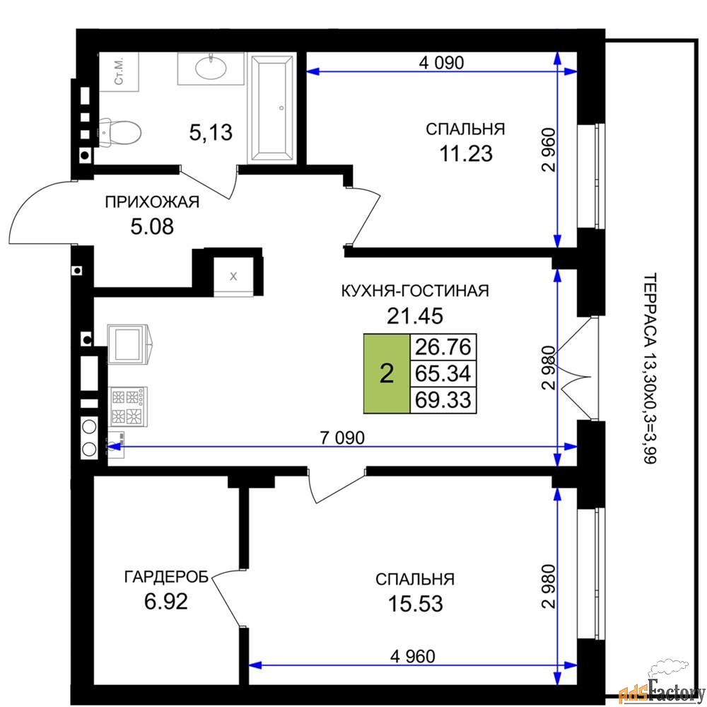 | Общая площадь (кв.м) | 69.33 |