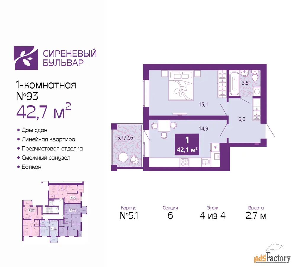 | Общая площадь (кв.м) | 42.7 |