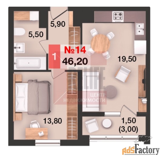 Арт. 128421003 <br>Эксклюзивно-выгодное предложение! <br>Сдача 1 квартал 2026 года. <br>Продается 1-комнатная квартира, расположенная на 3 этаже 15 - этажного дома, в современном ЖК «Sun Сity». Комплекс расположился в тихом районе Ленинградского района, ул. Елизаветинская г. Калининграда. <br>Общая площадь квартиры 46,2 кв. м., продуманная планировка, которая максимально эффективно позволит использовать пространство помещений и создать любой интерьер: спальня 13.8 кв. м., просторная кухня 19,5 кв. м. с выходом на балкон 3,0 кв. м. Высокие потолки и окна из кухни-гостиной создают простор и комфорт для проживания. Автономное отопление обеспечит низкие коммунальные платежи. <br>В квартире выполнена отделка серый ключ, произведена разводка электричества с выводами под освещение, установлены розетки и выключатели, радиаторы с терморегуляторами. <br>Комплекс имеет приятный внешний облик благодаря современному фасаду. <br>Жилой комплекс выполнен согласно современным стандартам качества строительства нормы и правила (СНИП), учтена пожарная безопасность и сейсмоустойчивость, комплекс отлично гармонирует с уже существующей застройкой микрорайона. <br>Во дворе располагаются современные детские площадки. Дом оборудован видеокамерами и домофоном. <br>Важное преимущество ЖК «Sun Сity» – расположение. Развитая городская инфраструктура Калининграда и шаговая доступность района. Всё необходимое рядом. Магазины, крупные торговые сети, фитнес-центр, аптеки, кафе, салоны красоты, школы и детские сады. При этом удобная транспортная развязка позволяет быстро оказываться в центре города. Остановка общественного транспорта. Долгая и счастливая жизнь возле в ЖК «Sun Сity» <br> <br>Комплекс отлично подходит для спокойного, неторопливого проживания, где можно насладиться тишиной и расслабленной атмосферой. При покупке квартиры возможны любые расчеты в том числе по программе Семейная ипотека. <br>Отличный вариант как для проживания, так и для инвестиций!