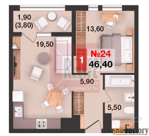 | Общая площадь (кв.м) | 46.4 |