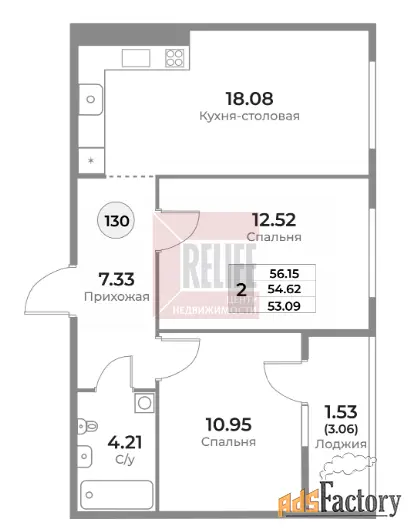 | Общая площадь (кв.м) | 54.62 |