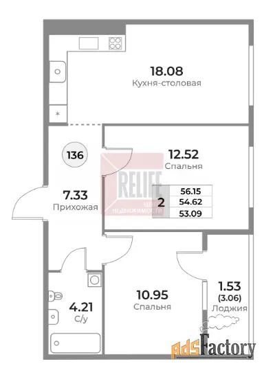 | Общая площадь (кв.м) | 54.62 |