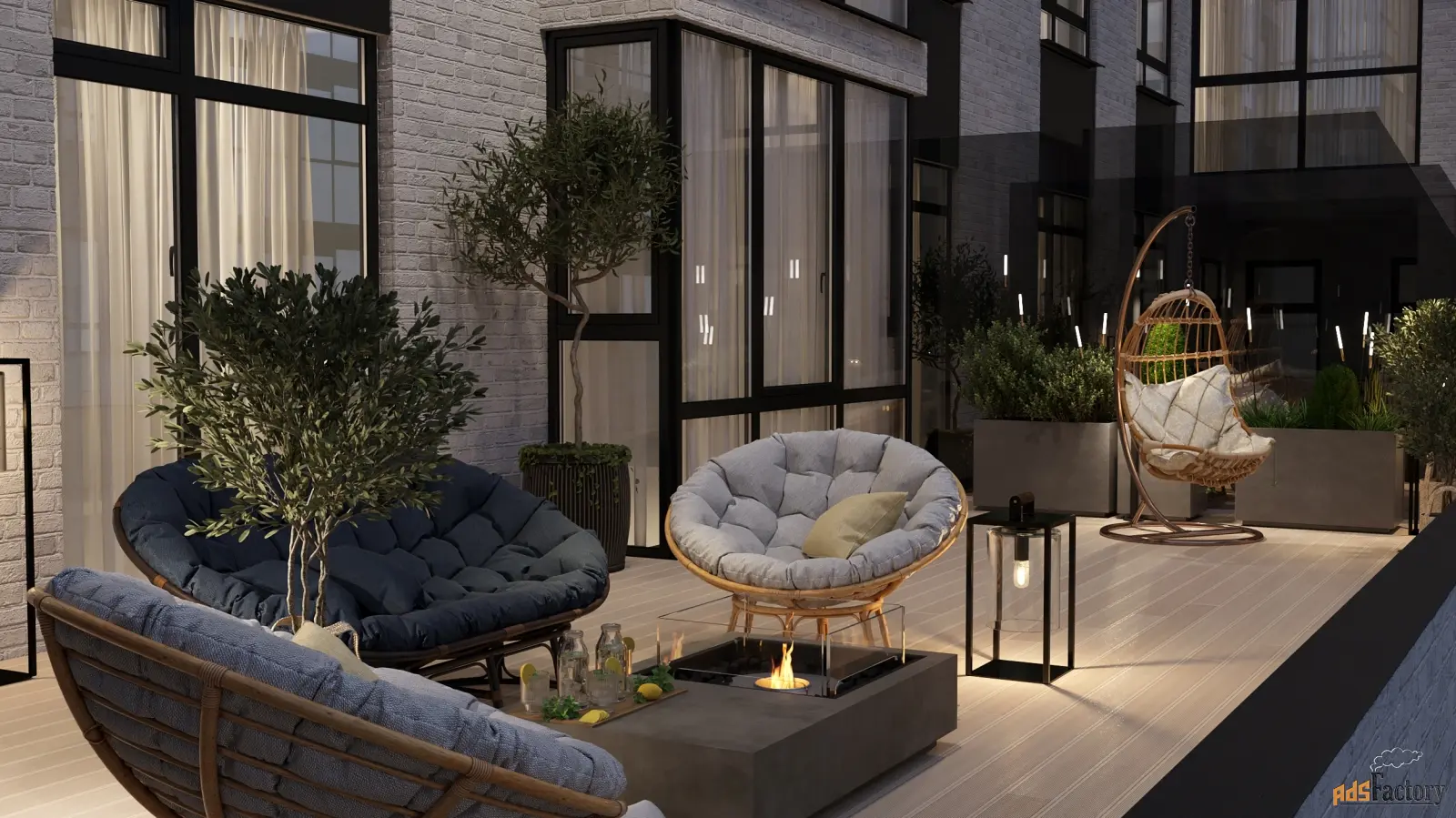Жителей комплекса ждут просторные квартиры комфорт-класса с огромными террасами, мастер-спальнями, гардеробными и кухнями-гостиными. В каждом доме предусмотрены места для хранения велосипедов, кладовые помещения на цокольных этажах.