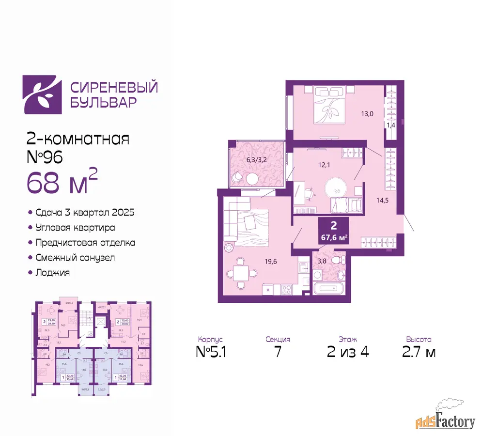 | Общая площадь (кв.м) | 68 |