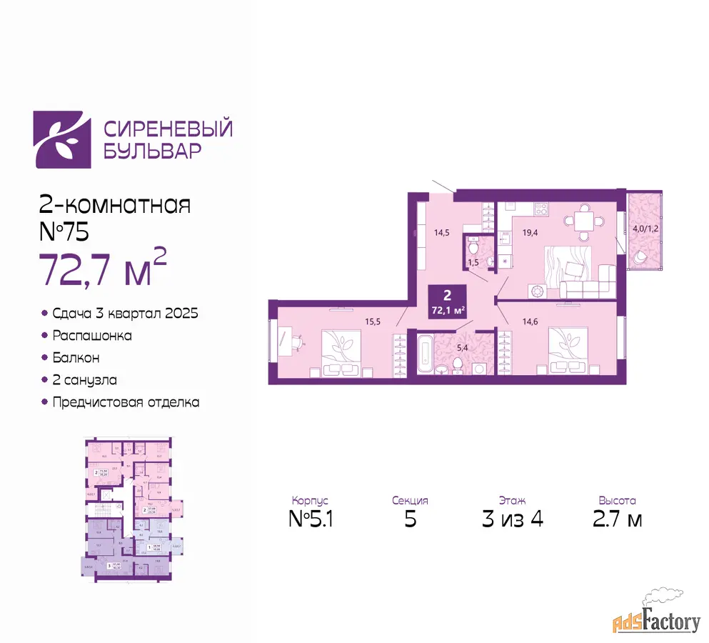 Дом монолитный, многоподъездный, высотой 4 этажа. Квартира находится в 5-й секции в корпусе 5.1. На этаже 5 квартир. В подъезде 1 грузовой лифт. На сегодняшний день строительство завершено, дом сдан в 4 квартале 2025 года. Оформление сделки по договору купли-продажи.