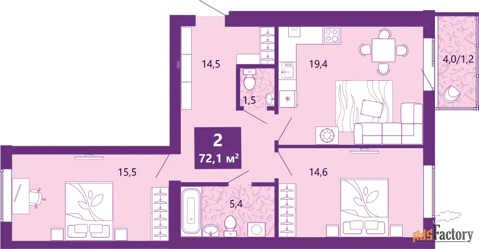 | Общая площадь (кв.м) | 72.7 |