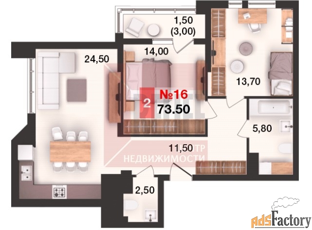 Арт. 128421035 <br>Эксклюзивно-выгодное предложение! <br>Сдача 1 квартал 2026 года. <br>Продается 2-комнатная квартира, расположенная на 4 этаже 15 - этажного дома, в современном ЖК «Sun Сity». Комплекс расположился в тихом районе Ленинградского района, ул. Елизаветинская г. Калининграда. <br>Общая площадь квартиры 73,5 кв. м., продуманная планировка, которая максимально эффективно позволит использовать пространство помещений и создать любой интерьер: спальня 14,00 кв. м., вторая спальня 13,70 кв. м., просторная кухня 24,5 кв. м. с выходом на балкон 3,0 кв. м. Высокие потолки и окна из кухни-гостиной создают простор и комфорт для проживания. Автономное отопление обеспечит низкие коммунальные платежи. <br>В квартире выполнена отделка серый ключ, произведена разводка электричества с выводами под освещение, установлены розетки и выключатели, радиаторы с терморегуляторами. <br>Комплекс имеет приятный внешний облик благодаря современному фасаду. <br>Жилой комплекс выполнен согласно современным стандартам качества строительства нормы и правила (СНИП), учтена пожарная безопасность и сейсмоустойчивость, комплекс отлично гармонирует с уже существующей застройкой микрорайона. <br>Во дворе располагаются современные детские площадки. Дом оборудован видеокамерами и домофоном. <br>Важное преимущество ЖК «Sun Сity» – расположение. Развитая городская инфраструктура Калининграда и шаговая доступность района. Всё необходимое рядом. Магазины, крупные торговые сети, фитнес-центр, аптеки, кафе, салоны красоты, школы и детские сады. При этом удобная транспортная развязка позволяет быстро оказываться в центре города. Остановка общественного транспорта. Долгая и счастливая жизнь возле в ЖК «Sun Сity» <br> <br>Комплекс отлично подходит для спокойного, неторопливого проживания, где можно насладиться тишиной и расслабленной атмосферой. При покупке квартиры возможны любые расчеты в том числе по программе Семейная ипотека. <br>Отличный вариант как для проживания, так и для инвестиций!