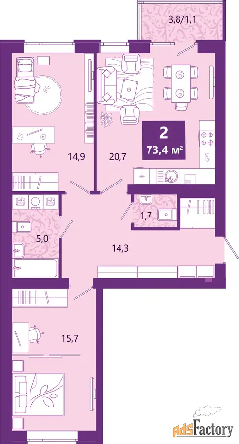 Жителей комплекса ждут просторные квартиры комфорт-класса с огромными террасами, мастер-спальнями, гардеробными и кухнями-гостиными. В каждом доме предусмотрены места для хранения велосипедов, кладовые помещения на цокольных этажах.