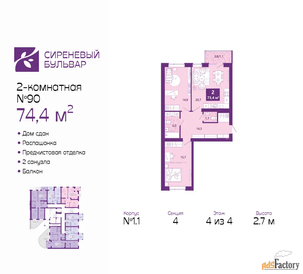 Жилой комплекс «Сиреневый бульвар» это 5 клубных 4-х этажных домов на 16 квартир и 9 домов с несколькими секциями. Вместе эти дома формируют собственное закрытое пространство с дворовыми территориями, спортивными и детскими площадками, местами отдыха и коммерческими помещениями. Дизайнерские входные группы и небольшие приусадебные участки квартир нижних этажей, обилие зелени, удобные зоны отдыха – всё устроено с особым вниманием.