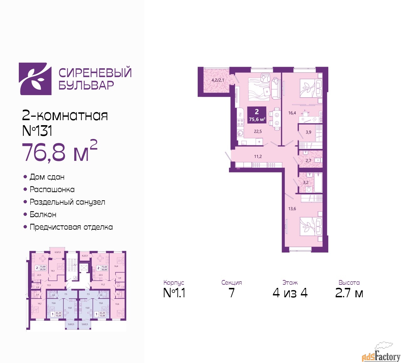 | Общая площадь (кв.м) | 76.8 |