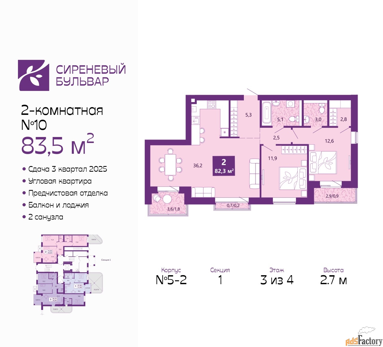 | Общая площадь (кв.м) | 83.5 |