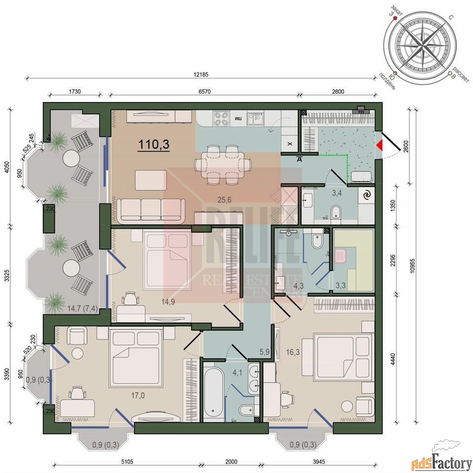 Арт. 106511744 <br>Продается эксклюзивная 3 комнатная квартира в жилом комплексе комфорт класса «Адрес Счастья» Квартира расположена на 4 этаже 9-ти этажного дома. <br> <br>Общая площадь квартиры 110.3 кв.м. Планировка квартиры функциональна и продумана до мелочей, что обеспечивает достойное и комфортное проживание. Просторная кухня-гостиная площадью 25.6 кв.м. с выходом на террасу. Мастер-спальня 16.3 кв.м., с ванной комнатой и баней! Две комнаты 17,0+14,9 кв.м. с выходом на террасу. Совмещенный санузел и гостевой санузел. Высота потолков 3 метра. Автономное отопление регулируется компактным теплопунктом в квартире, установлена система теплый пол. Дом сдан. <br> <br>Жилой комплекс «Адрес Счастья» - новый уровень комфорта в сфере массовой жилой застройки. Энергосберегающее панорамное остекление открывает живописные виды и создает солнечное настроение. Благоустройство придомовой территории разработано в соответствии с концепцией «двор без машин», что обеспечивает безопасность жителей. <br> <br>Для удобства жителей комплекса предусмотрено всё: гостевой и подземный паркинг, сеть велодорожек с двусторонним движением, колясочные, велопарковки и общественный туалет. <br>Изюминка благоустройства внутреннего двора - универсальная спортивная площадка для активных видов спорта, спроектированная таким образом, чтобы обеспечить естественное дневное освещение для подземного паркинга. <br> <br>Крыши домов стали зонами отдыха на открытом воздухе, где можно заниматься спортом и йогой. <br>Развитая инфраструктура жилого квартала: рестораны, кафе, салоны красоты, магазины, детские школы искусств, аптеки, детская и взрослая поликлиники, торговый центр, детские сады, школа, фитнес-залы. <br> <br>Есть возможность приобрести два парковочных места рядом со входом в подъезд и кладовку. <br> <br>Удобная транспортная развязка: до Рыбной деревни и Кафедрального собора-7 минут; до аэропорта Храброво - 18 минут; до побережья Балтийского моря - 22 минуты. <br>Будем рады поделиться с вами еще более подробной и развернутой информацией по телефону или же в рамках личной встречи. Обращайтесь к нам в любое время!
