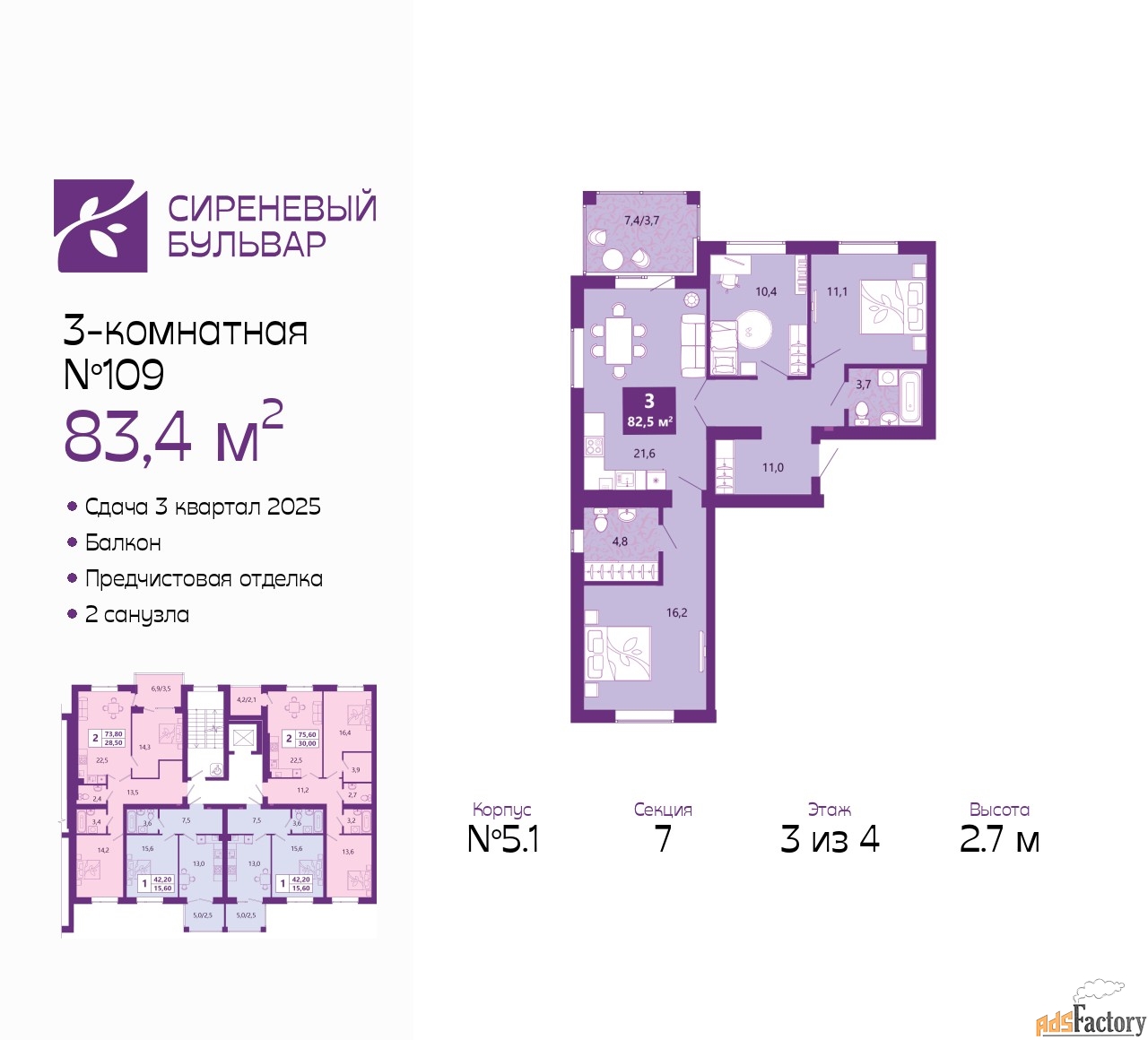 | Общая площадь (кв.м) | 83.4 |