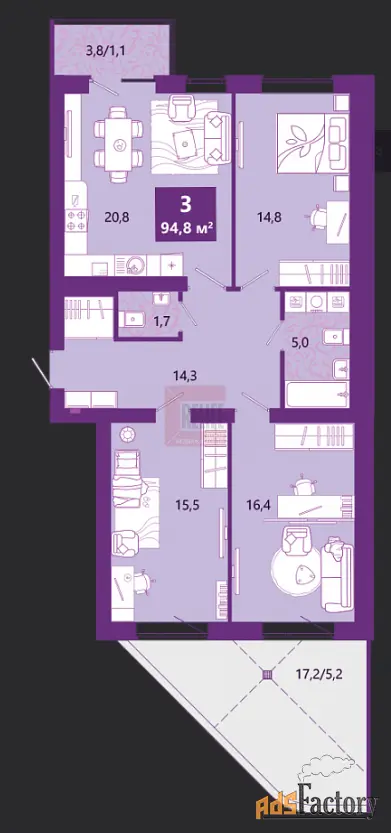 | Общая площадь (кв.м) | 95.8 |