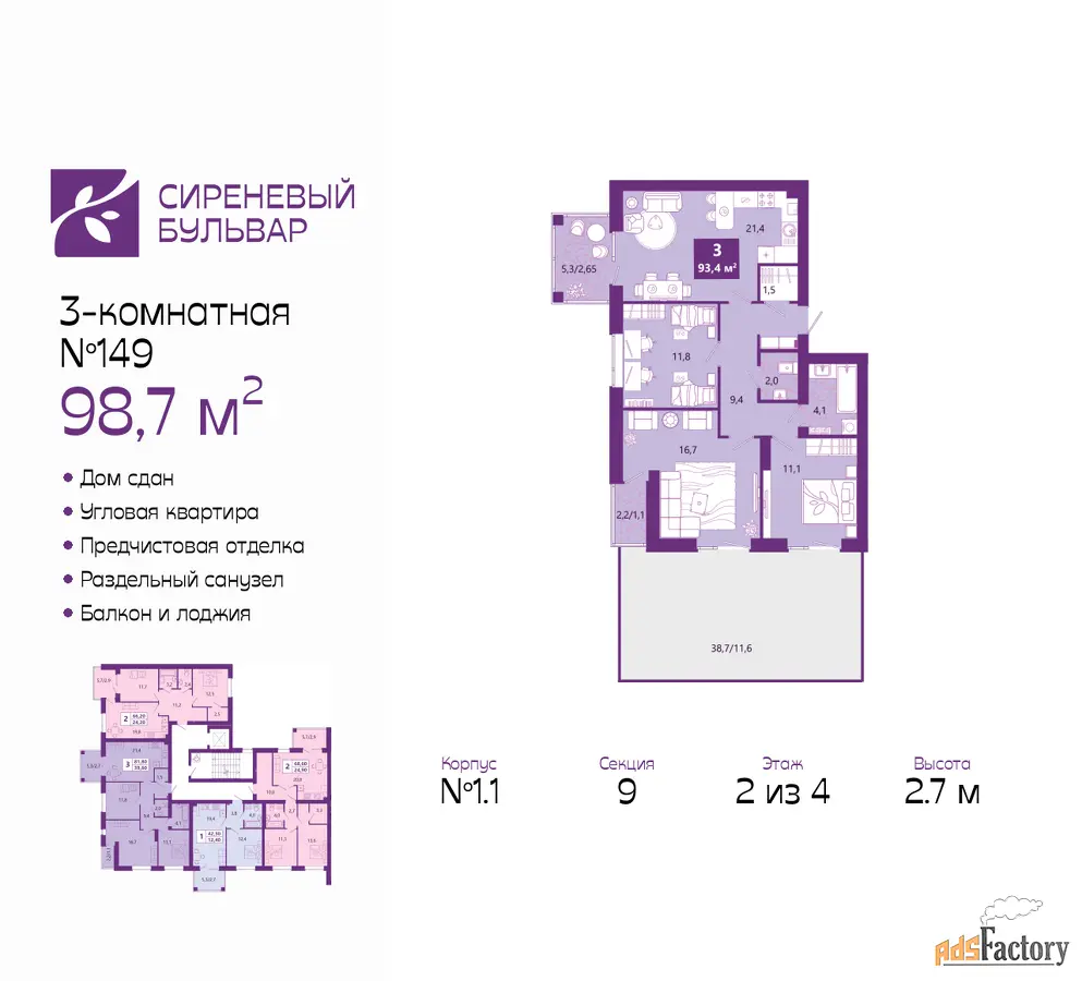 Дом монолитный, многоподъездный, высотой 4 этажа. Квартира находится в 9-й секции в корпусе 1.1. На этаже 4 квартиры. В подъезде 1 грузовой лифт. Начало строительства - 4 квартал 2022 года. На сегодняшний день строительство завершено, дом сдан в 1 квартале 2024 года. Оформление сделки по договору купли-продажи.