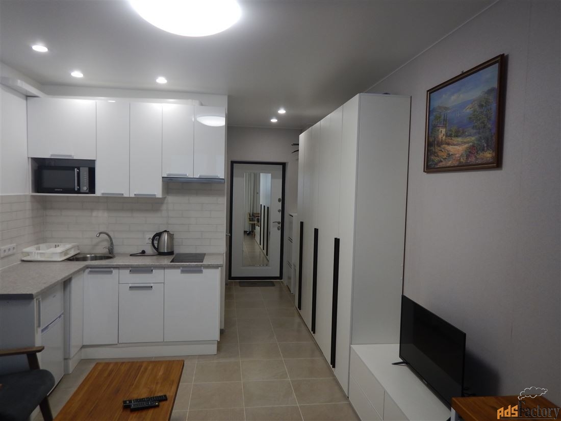 Студия с мебелью и техникой и даже с интернетом. Один взрослый собственник. Никто не прописан. Без обременений.